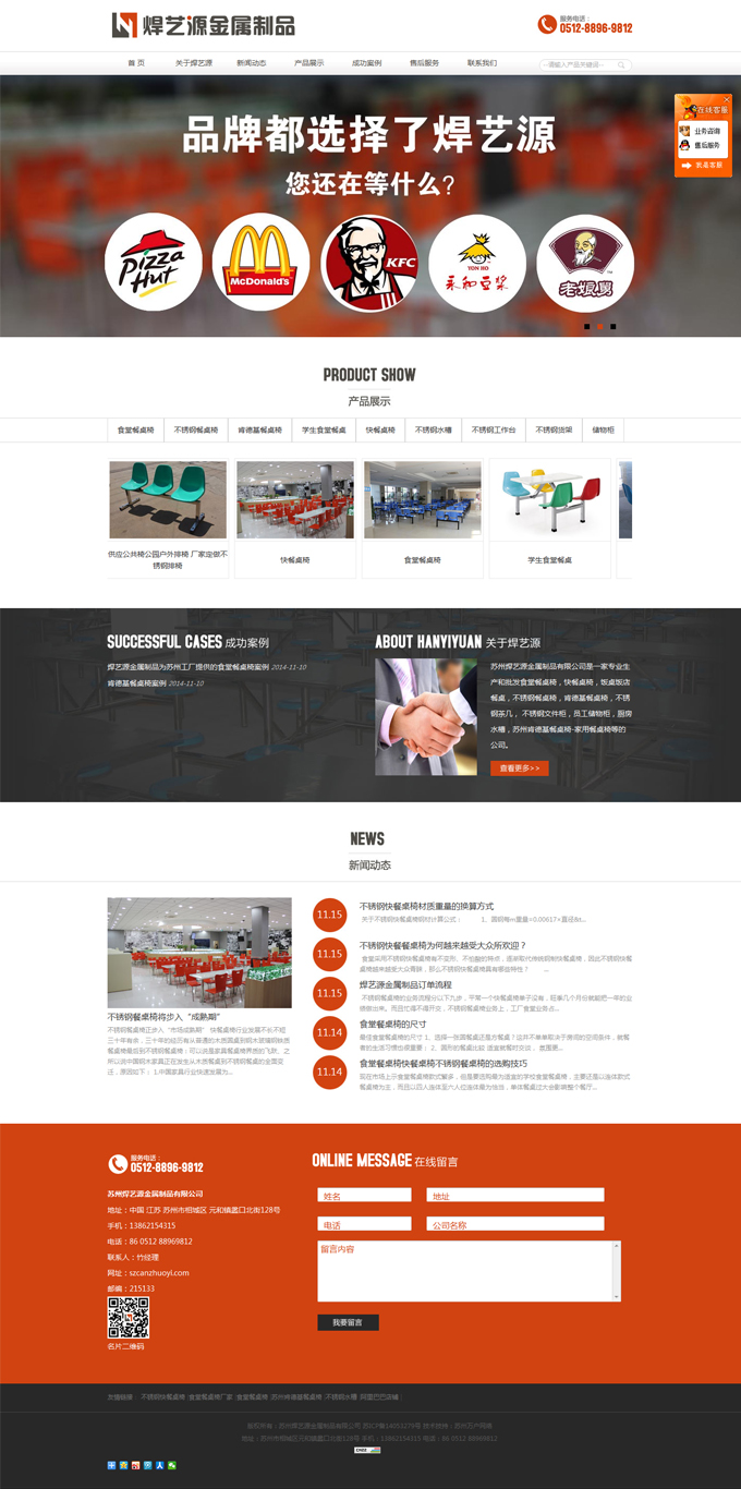 蘇州焊藝源金屬制品有限公司是一家生產(chǎn)和批發(fā)食堂餐桌椅,快餐桌椅,飯桌飯店餐桌,不銹鋼餐桌椅,肯德基餐桌椅,不銹鋼茶幾,不銹鋼文件柜,員工儲物柜,廚房水槽,蘇州肯德基餐桌椅-家用餐桌椅等的公司。服務(wù)于肯德基、麥當(dāng)勞、必勝客、老娘舅、德克士、永和豆?jié){、阿香米線、餡餅粥、英雄煮等一些大型快餐連鎖機(jī)構(gòu)。