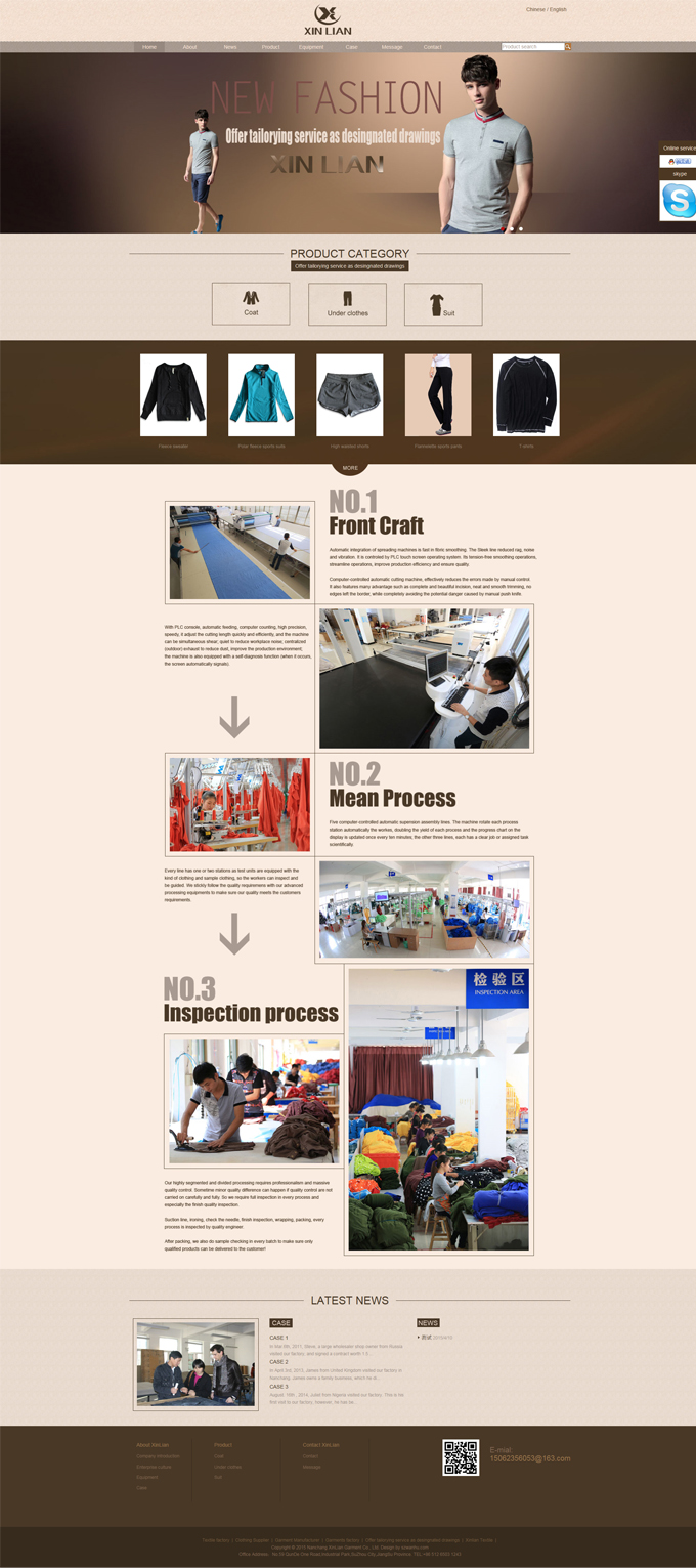 The company owns a factory with an area of 10,000 square meters, more than 400 employees and annual sales revenues of more than RMB80 million, and manufacturing capacity of more than 10 millions pieces of garments. The factory has eight production lines, of which there are five automatic production lines, and has two sets of automatic fiberic spreading machine, an automatic fiberic cutting machine and many advanced sewing equipments and quality testing equipment.