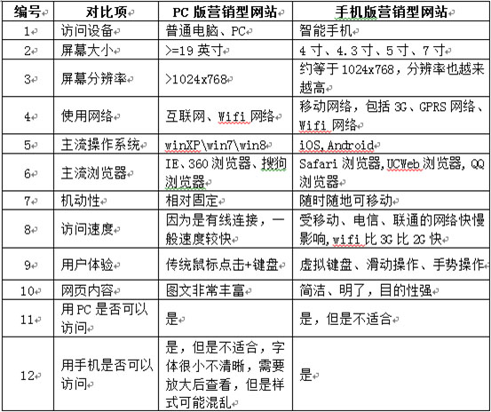 PC版網(wǎng)站與手機版網(wǎng)站對比